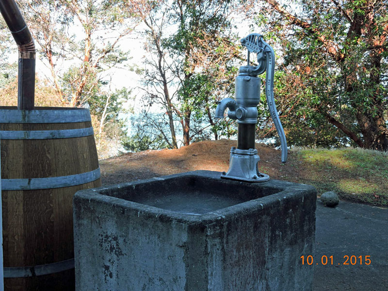 2015 - Contractors reactivated the cistern, installed a sump pump, and installed a vintage hand pump.
