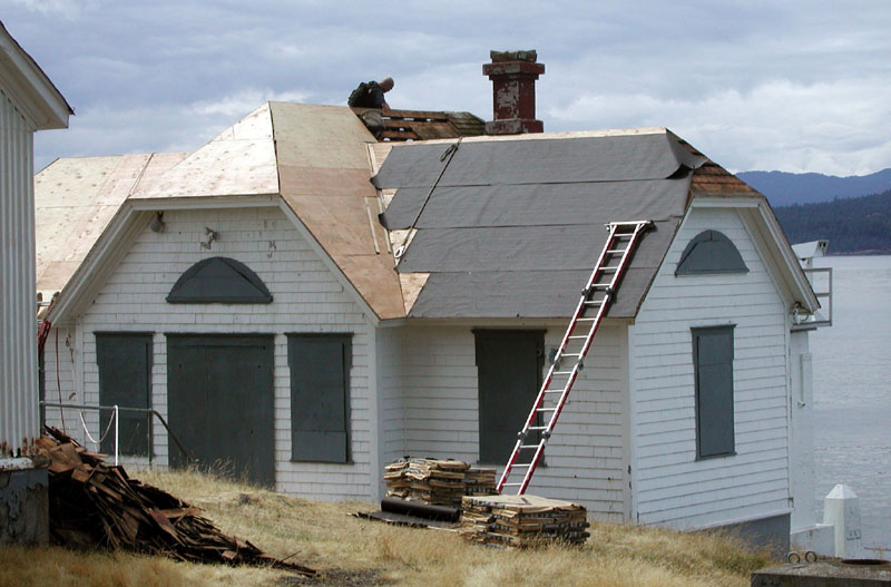 In 2005 the U. S. Coast Guard personnel put a new roof on the fog signal building