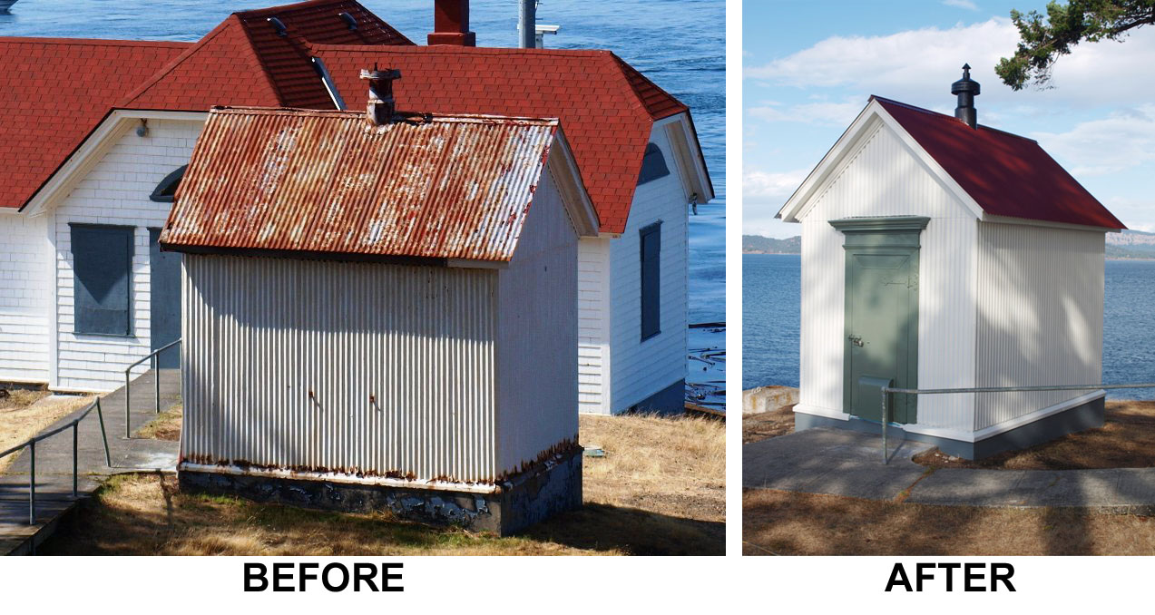 In 2005 the U. S. Coast Guard personnel put a new roof on the fog signal building