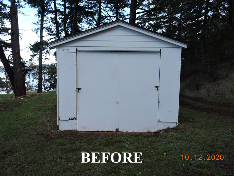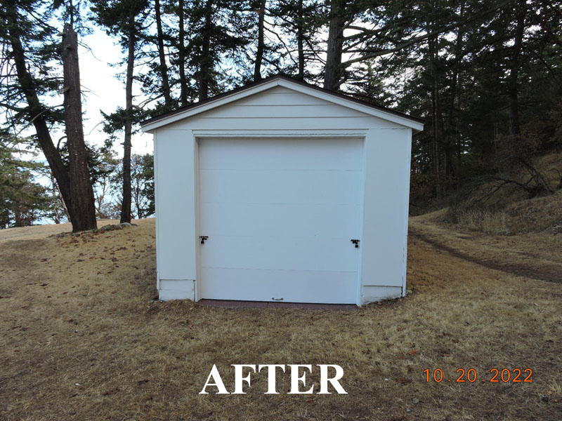 2022 - Garage before new door and replacement of deteriorated plywood.