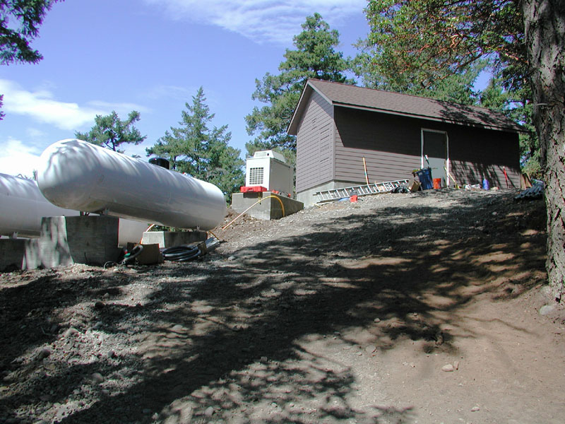 7/31/06 Update: The power building nearing completion with propane generator and tanks.