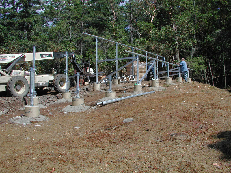 7/31/06 Update: The solar array under construction. 90 each 175 watt solar panels will charge the batteries.